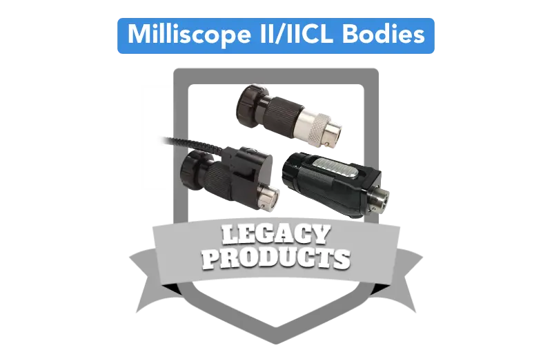 The Legacy Milliscope II, IICL, and MilliWand models require intermediate optical bodies to conduct remote visual inspections. Newer versions of legacy bodies are available.
