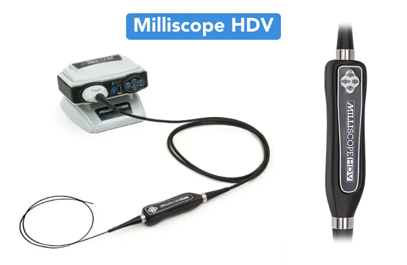 A flexible, CMOS-sensor video borescope compatible with the same Milliscope HD Base Unit, the Milliscope HDV provides outstanding picture quality and resolution in a small package.